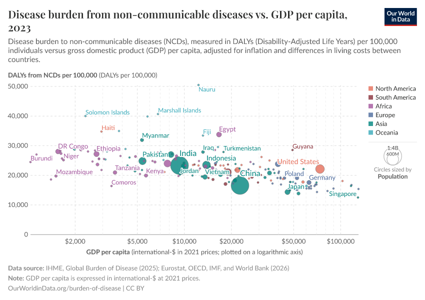 The visualizations here focus on the disease burden resulting from non-communicable diseases (NCDs).