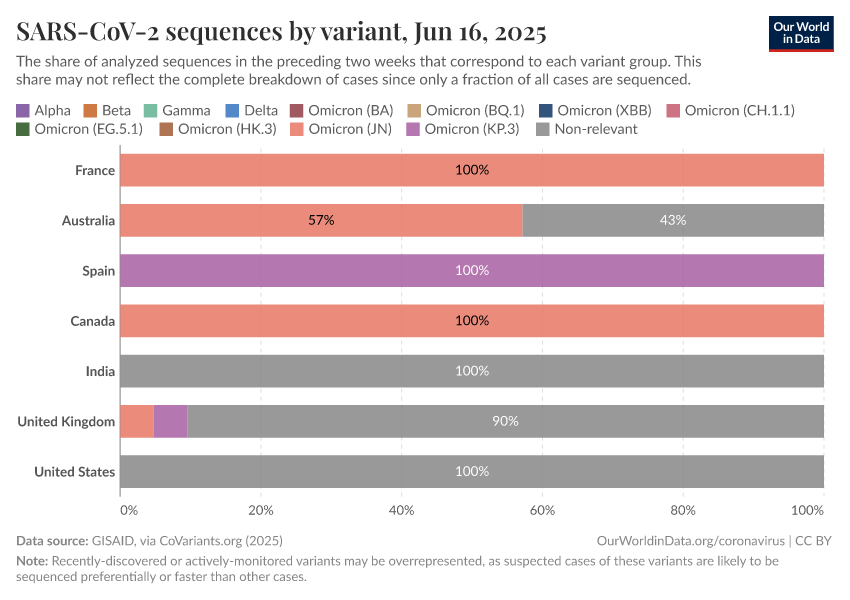 Coronavirus sequences by variant