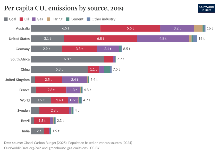 Per capita: How do coal, oil, gas, and cement emissions compare?