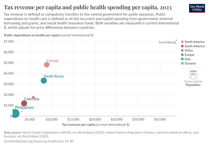 Esteban Ortiz-Ospina, Pablo Arriagada, and Max Roser (2017) - “Healthcare Spending” Published online at OurWorldinData.org. Retrieved from: 'https://search-sync-local-query.owid.pages.dev/financing-healthcare' [Online Resource]BibTeX citation