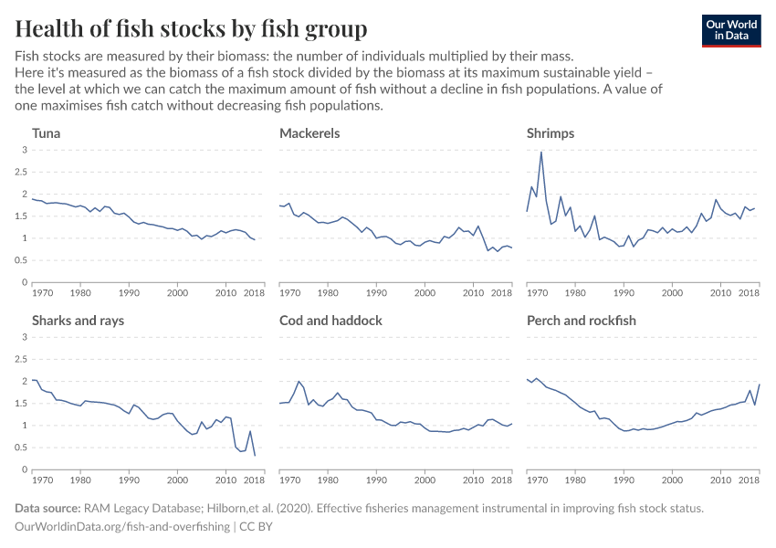 Hannah Ritchie and Max Roser (2021) - “Fish and Overfishing” Published online at OurWorldinData.org. Retrieved from: 'https://search-sync-local-query.owid.pages.dev/fish-and-overfishing' [Online Resource]BibTeX citation