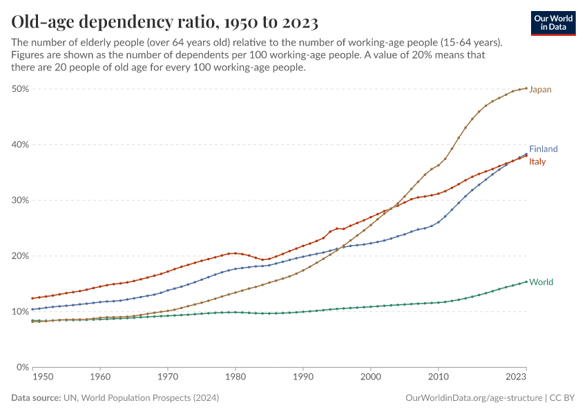 “Data Page: Old-age dependency ratio, age old”. Our World in Data (2026). Data adapted from United Nations. Retrieved from https://search-sync-local-query.owid.pages.dev/grapher/age-dependency-ratio-old [online resource]How to cite this data
