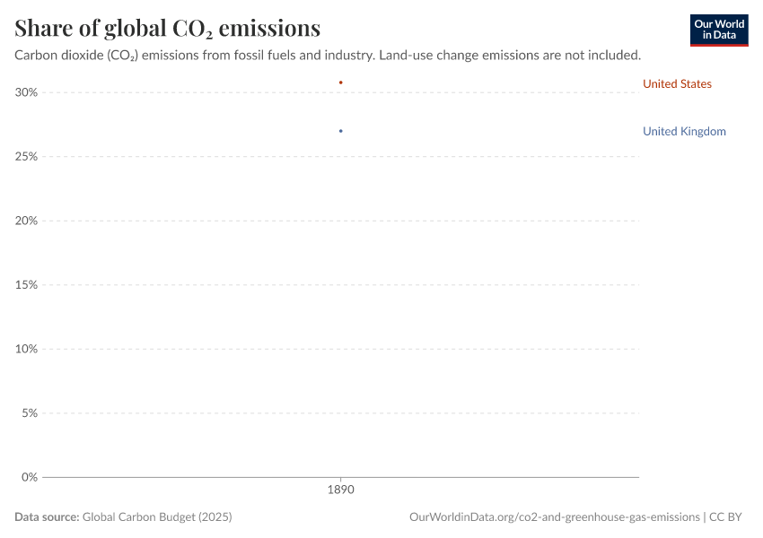 • This data is based on territorial emissions, meaning the emissions produced within a country's borders, but not those from imported goods. For example, emissions from imported steel are counted in the country where the steel is produced. To learn more and look at emissions adjusted for trade, read our article: How do CO₂ emissions compare when we adjust for trade?