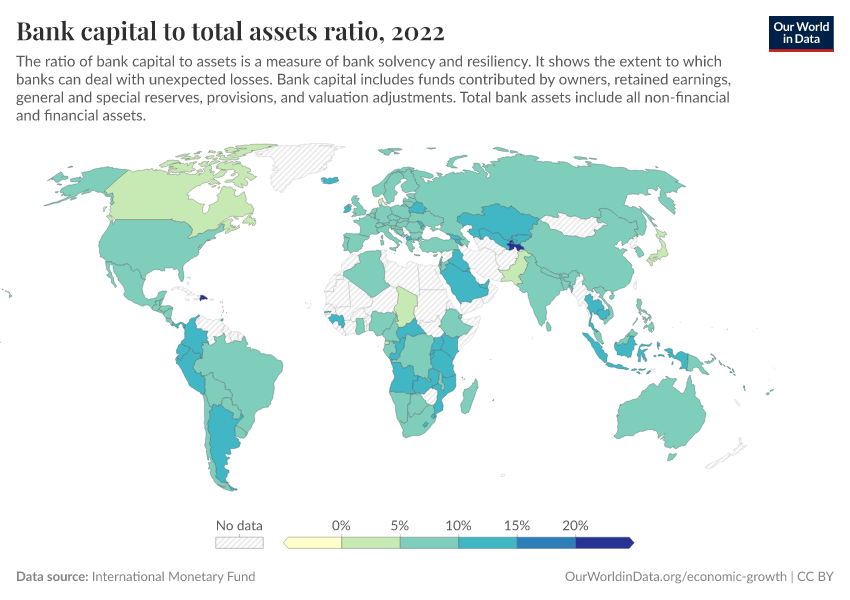 “Data Page: Bank capital to total assets ratio”. Our World in Data (2026). Data adapted from International Monetary Fund. Retrieved from https://search-sync-local-query.owid.pages.dev/grapher/bank-capital-to-total-assets-ratio [online resource]How to cite this data