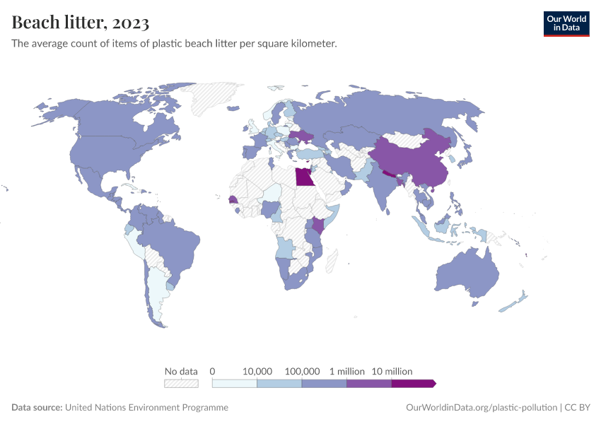 “Data Page: Beach litter”. Our World in Data (2026). Data adapted from United Nations Environment Programme. Retrieved from https://search-sync-local-query.owid.pages.dev/grapher/beach-litter [online resource]How to cite this data