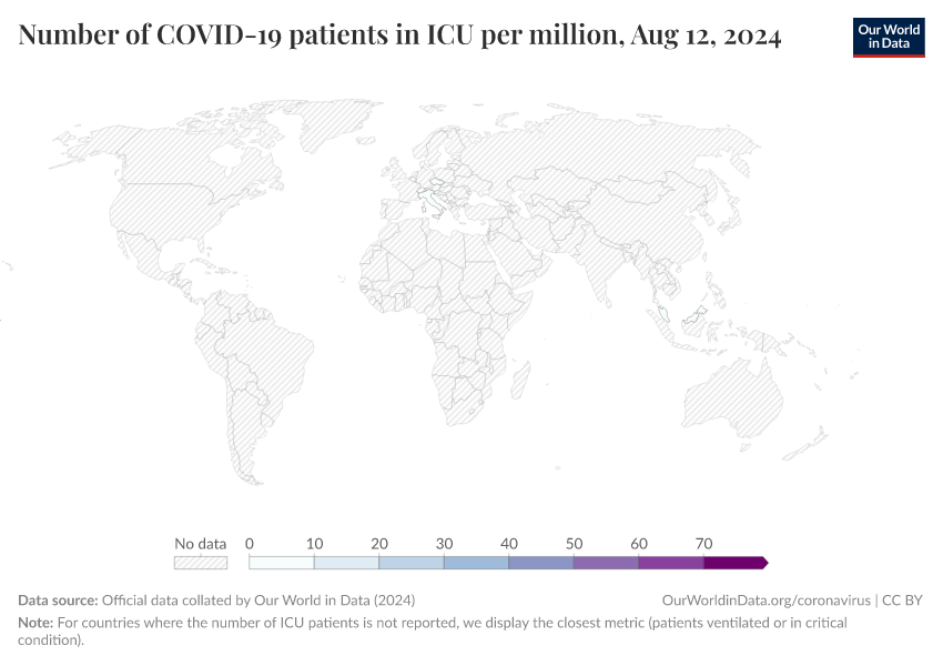 • For countries where the number of ICU patients is not reported, we display the closest metric (patients ventilated or in critical condition).