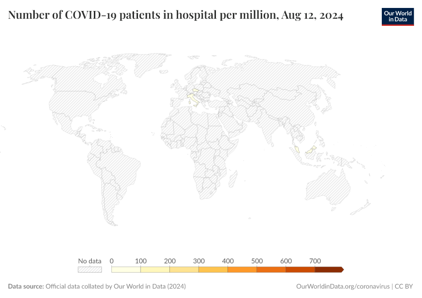 Official data collated by Our World in Data (2024) – processed by Our World in Data. “Number of COVID-19 patients in hospital per million” [dataset]. Official data collated by Our World in Data, “COVID-19, hospitalisations” [original data]. Retrieved January 5, 2026 from https://search-sync-local-query.owid.pages.dev/grapher/current-covid-hospitalizations-per-million
