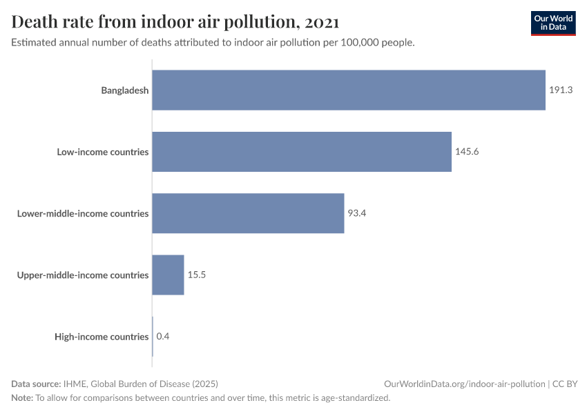 IHME, Global Burden of Disease (2024) – with minor processing by Our World in Data. “Death rate from indoor air pollution” [dataset]. IHME, Global Burden of Disease, “Global Burden of Disease - Risk Factors” [original data]. Retrieved January 5, 2026 from https://search-sync-local-query.owid.pages.dev/grapher/death-rate-by-source-from-indoor-air-pollution