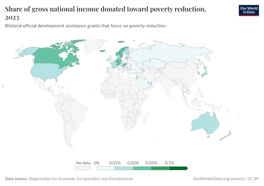 “Data Page: Share of gross national income donated toward poverty reduction”. Our World in Data (2026). Data adapted from Organisation for Economic Co-operation and Development. Retrieved from https://search-sync-local-query.owid.pages.dev/grapher/donated-official-development-assistance-grants-for-poverty-reduction [online resource]How to cite this data