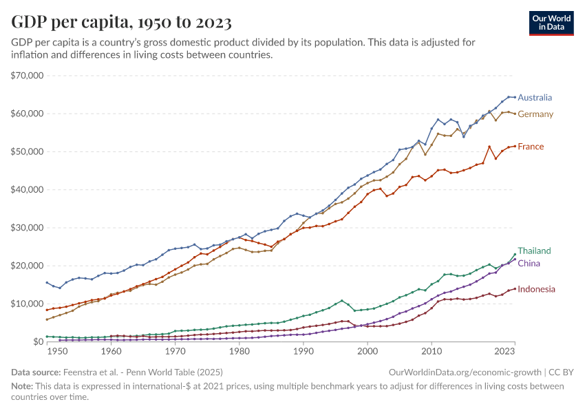 Feenstra et al. - Penn World Table (2025) – with major processing by Our World in Data. “GDP per capita – Penn World Table – In constant international-$” [dataset]. Feenstra et al., “Penn World Table 11.0” [original data]. Retrieved January 5, 2026 from https://search-sync-local-query.owid.pages.dev/grapher/gdp-per-capita-penn-world-table
