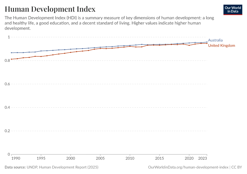 UNDP, Human Development Report (2025) – with minor processing by Our World in Data. “Human Development Index – UNDP” [dataset]. UNDP, Human Development Report, “Human Development Report” [original data]. Retrieved January 5, 2026 from https://search-sync-local-query.owid.pages.dev/grapher/human-development-index