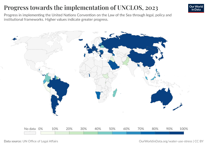 “Data Page: Progress towards the implementation of UNCLOS”. Our World in Data (2026). Data adapted from UN Office of Legal Affairs. Retrieved from https://search-sync-local-query.owid.pages.dev/grapher/implementation-of-unclos [online resource]How to cite this data