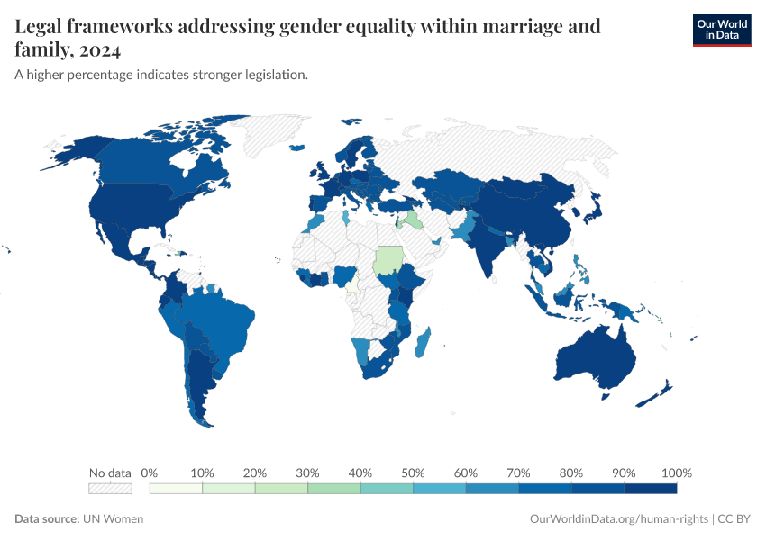 “Data Page: Legal frameworks addressing gender equality within marriage and family”. Our World in Data (2026). Data adapted from UN Women. Retrieved from https://search-sync-local-query.owid.pages.dev/grapher/legal-frameworks-gender-equality-within-marriage-and-family [online resource]How to cite this data