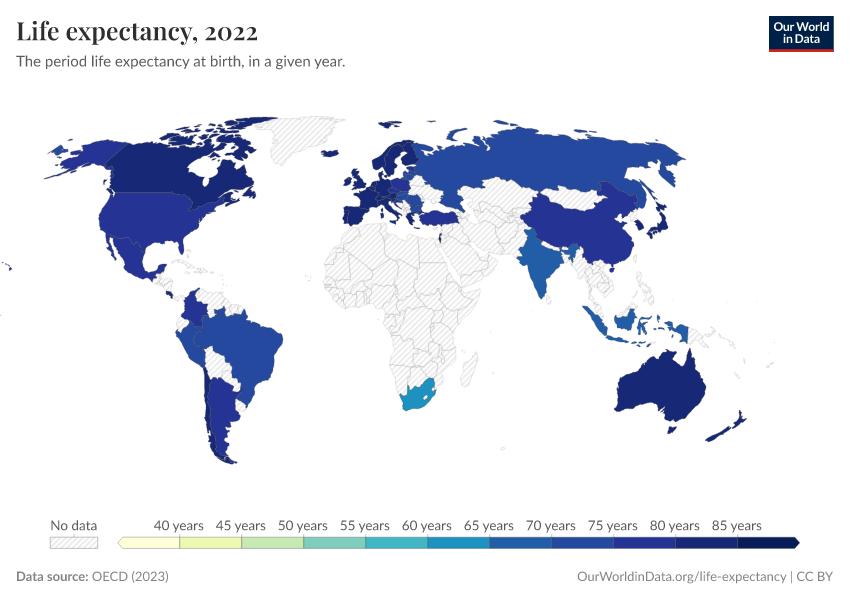 “Data Page: Life expectancy at birth”, part of the following publication: Saloni Dattani, Lucas Rodés-Guirao, Hannah Ritchie, Esteban Ortiz-Ospina, and Max Roser (2023) - “Life Expectancy”. Data adapted from OECD. Retrieved from https://search-sync-local-query.owid.pages.dev/grapher/life-expectancy-at-birth-oecd [online resource]How to cite this data