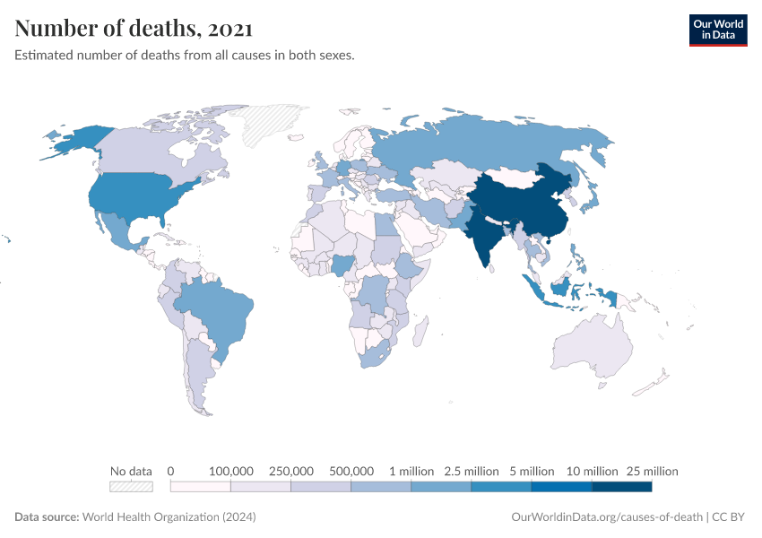 World Health Organization (2024) – with major processing by Our World in Data. “Number of deaths” [dataset]. World Health Organization, “Global Health Estimates” [original data]. Retrieved January 5, 2026 from https://search-sync-local-query.owid.pages.dev/grapher/number-of-deaths-who