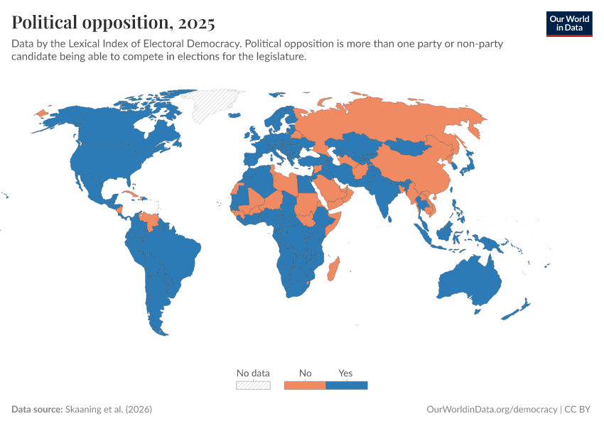Skaaning et al. (2025) – processed by Our World in Data. “Political opposition” [dataset]. Skaaning et al., “Lexical Index of Electoral Democracy (LIED) v6.8” [original data]. Retrieved January 5, 2026 from https://search-sync-local-query.owid.pages.dev/grapher/political-opposition-lexical