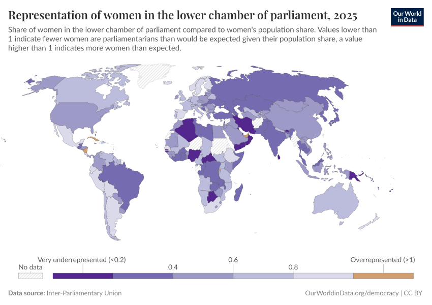 “Data Page: Representation of women in the lower chamber of parliament”. Our World in Data (2026). Data adapted from Inter-Parliamentary Union. Retrieved from https://search-sync-local-query.owid.pages.dev/grapher/representation-of-women-in-lower-chamber-of-parliament [online resource]How to cite this data