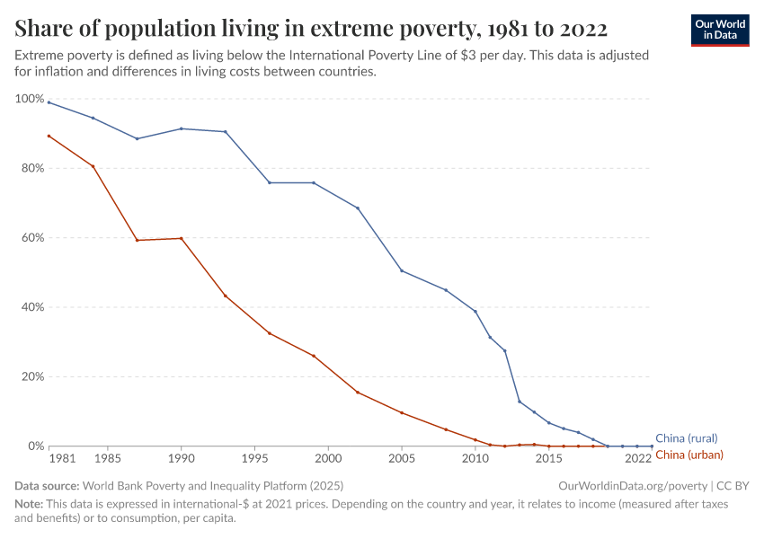 World Bank Poverty and Inequality Platform (2025) – with major processing by Our World in Data. “Share of population living in extreme poverty – World Bank” [dataset]. World Bank Poverty and Inequality Platform, “World Bank Poverty and Inequality Platform (PIP) 20250930_2021, 20250930_2017” [original data]. Retrieved January 5, 2026 from https://search-sync-local-query.owid.pages.dev/grapher/share-of-population-in-extreme-poverty