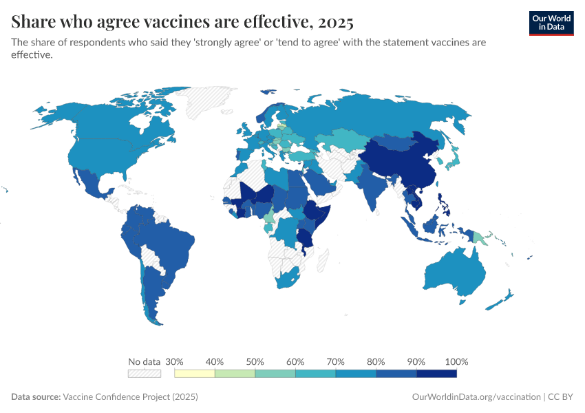Vaccine Confidence Project (2025) – processed by Our World in Data. “Share who agree vaccines are effective” [dataset]. Vaccine Confidence Project, “Vaccine Confidence Index” [original data]. Retrieved January 5, 2026 from https://search-sync-local-query.owid.pages.dev/grapher/share-who-agree-vaccines-are-effective