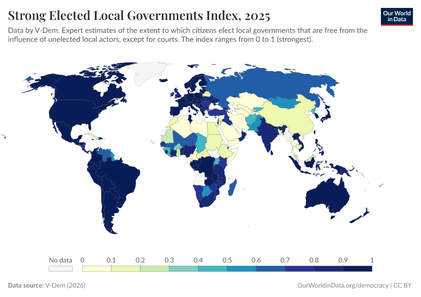 “Data Page: Elected local governments”, part of the following publication: Bastian Herre, Lucas Rodés-Guirao, and Esteban Ortiz-Ospina (2013) - “Democracy”. Data adapted from V-Dem. Retrieved from https://search-sync-local-query.owid.pages.dev/grapher/strong-elected-local-governments-index [online resource]How to cite this data