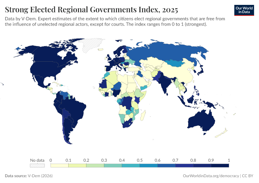 “Data Page: Elected regional governments”, part of the following publication: Bastian Herre, Lucas Rodés-Guirao, and Esteban Ortiz-Ospina (2013) - “Democracy”. Data adapted from V-Dem. Retrieved from https://search-sync-local-query.owid.pages.dev/grapher/strong-elected-regional-governments-index [online resource]How to cite this data