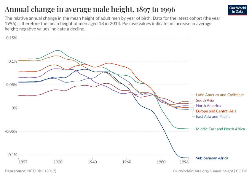 There are significant regional variations in change in average human heights.