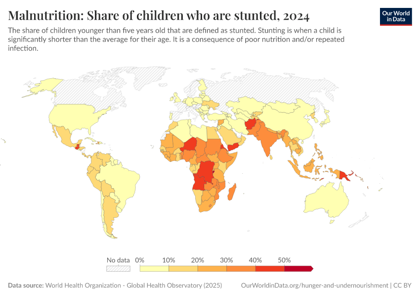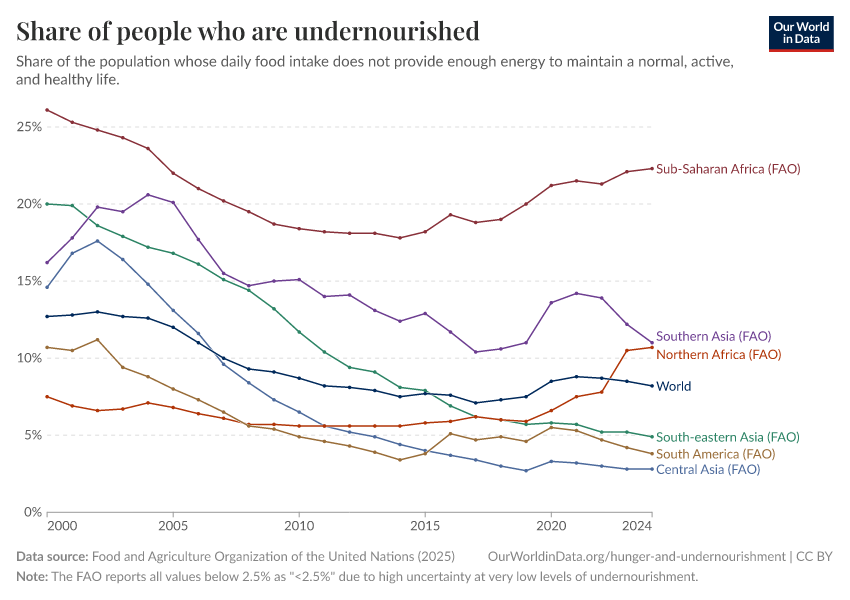 Hannah Ritchie, Pablo Rosado, and Max Roser (2023) - “Hunger and Undernourishment” Published online at OurWorldinData.org. Retrieved from: 'https://search-sync-local-query.owid.pages.dev/hunger-and-undernourishment' [Online Resource]BibTeX citation