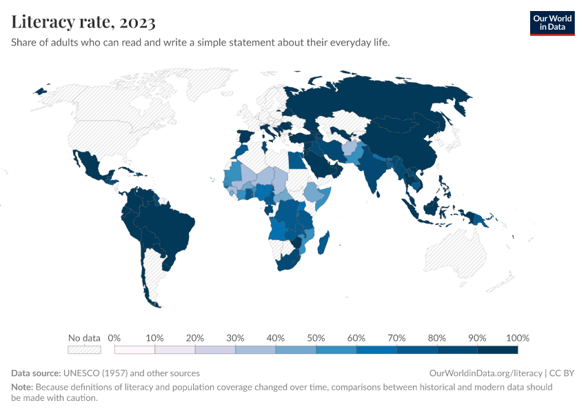Max Roser and Esteban Ortiz-Ospina (2018) - “Literacy” Published online at OurWorldinData.org. Retrieved from: 'https://search-sync-local-query.owid.pages.dev/literacy' [Online Resource]BibTeX citation