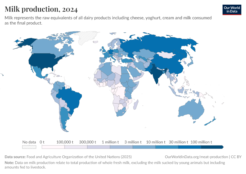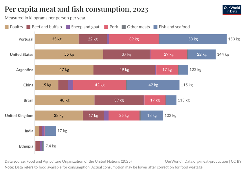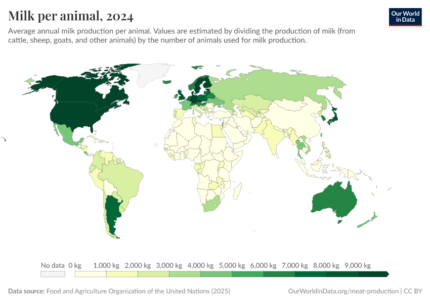 Hannah Ritchie, Pablo Rosado, and Max Roser (2019) - “Meat and Dairy Production” Published online at OurWorldinData.org. Retrieved from: 'https://search-sync-local-query.owid.pages.dev/meat-production' [Online Resource]BibTeX citation
