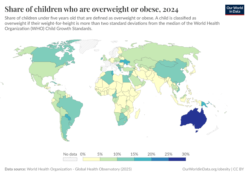 On this page, you will find global data and research on obesity — its prevalence, drivers, health consequences, and trends over time.