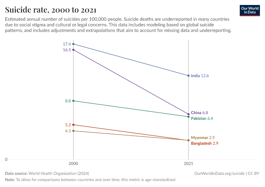The global suicide rate has fallen, though.