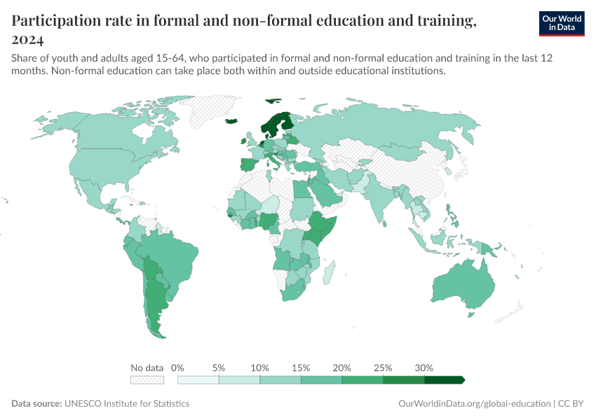 Further information on education and learning can be found across several Our World in Data topic pages on Education, Teachers and Schools, Education Spending, and Literacy.