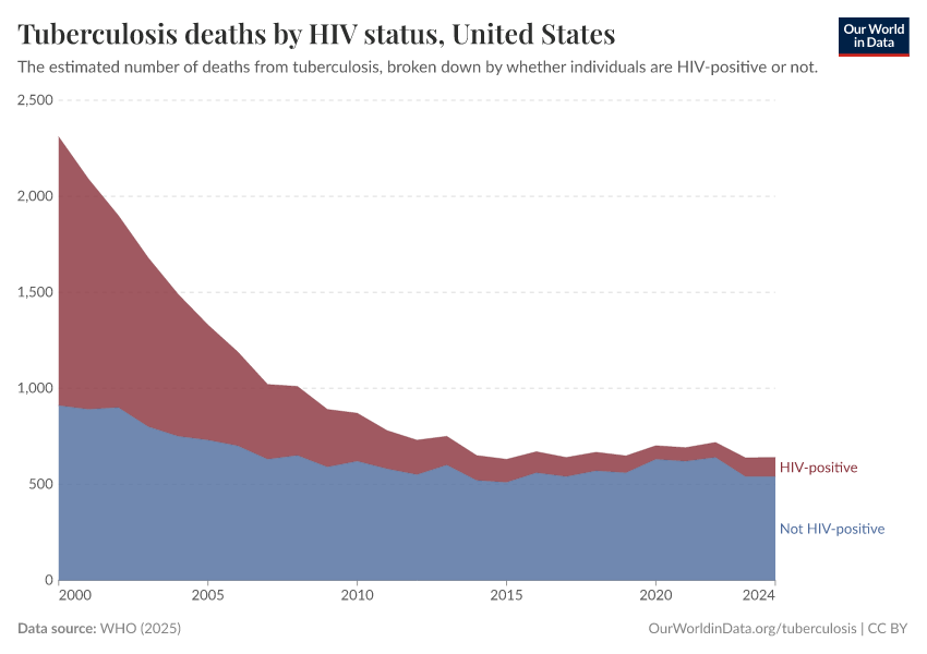 But as you can also see in the chart, even more aggressive controls on TB and HIV meant that this share has fallen a lot over the last decades.